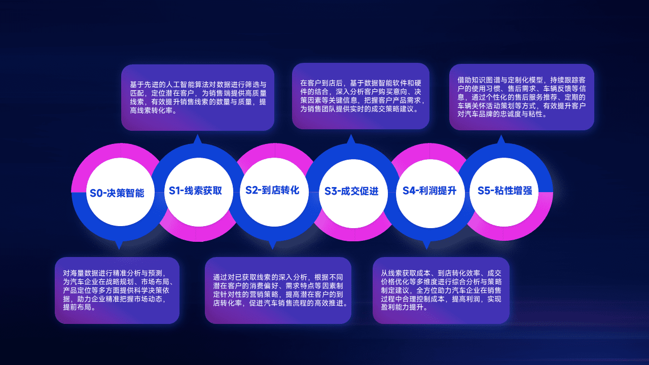 通过拓宽潜在客户来源、、优化线索分配并提高到店转化率,,,以增强销售效率。。。同时,,,利用线索数据不断优化分析模型,,,,有效提升转化率,,,,扩大营销影响力。。。。